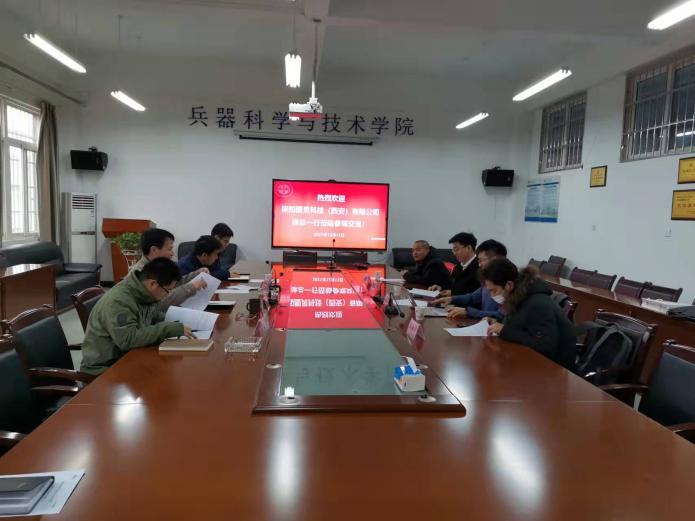 探知图灵董事长兼西电人工智能创新实验室负责人徐巍、西电人工智能创新实验室主任、智能信息处理实验室负责人田小林、探知图灵首席运营官岳辛、兵器学院院领导等出席交流。