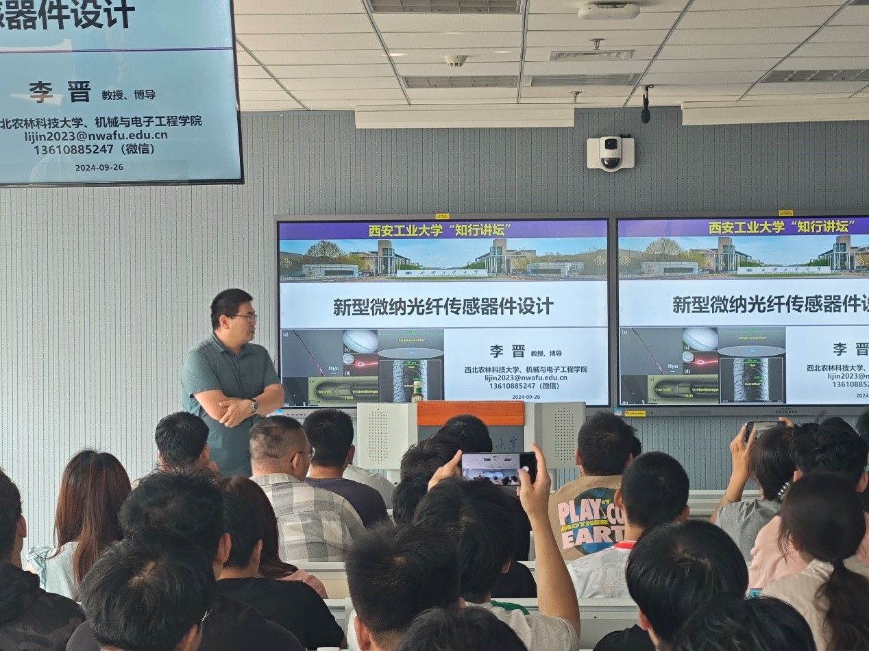 2024年9月26日上午,西北农林科技大学李晋教授应邀为我校师生作题为“新型微纳光纤传感器件设计”的学术报告,兵器学院院长肖锋、党委书记蔡长龙、学院教师及研究生参加了报告会。