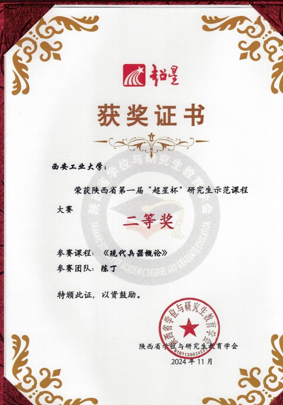 兵器科学与技术学院副教授陈丁在陕西省首届研究生示范课程大赛获二等奖