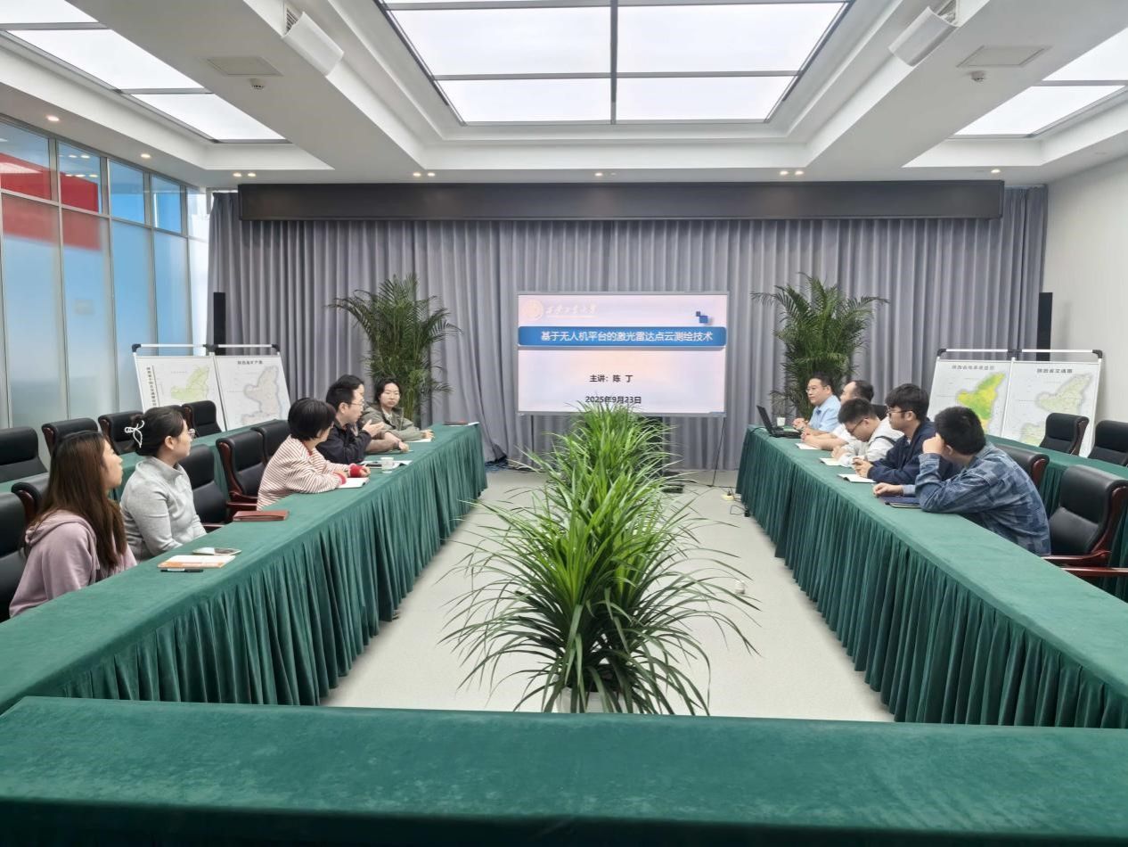 2025年9月23日上午,我院陈丁副教授应邀赴陕西省第三测绘工程院(即自然资源部第二地形测量队)作题为“基于无人机平台的激光雷达点云测绘技术”的学术讲座。该院技术骨干、青年职工等三十余人参加本次交流,由该院总工程师林璐负责主持。