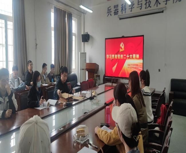 2023年3月,为了营造浓厚的学习氛围,激发同学们的学习热情,兵器科学与技术学院积极组织动员研究生学习并深入领会二十大精神,并结合学生实际,将二十大精神贯彻落实在学生的思想行为和学生生活中。20级学硕班开展了“学习二十大”为主题的系列活动。22级专硕团支部召开“学习二十大,奋进新征程"知识竞答活动,21级学硕团支部召开“学习二十大,青春心向党”主题团课。20级专硕、22级学硕、21级专硕团支部分别通过线上线下组织、自主学习的不同形式。在学生中进行二十大精神的学习。与此同时,研究生第一、第二党支部通过支部党日活动,在研究生党员中进行二十大精神的学习交流。
