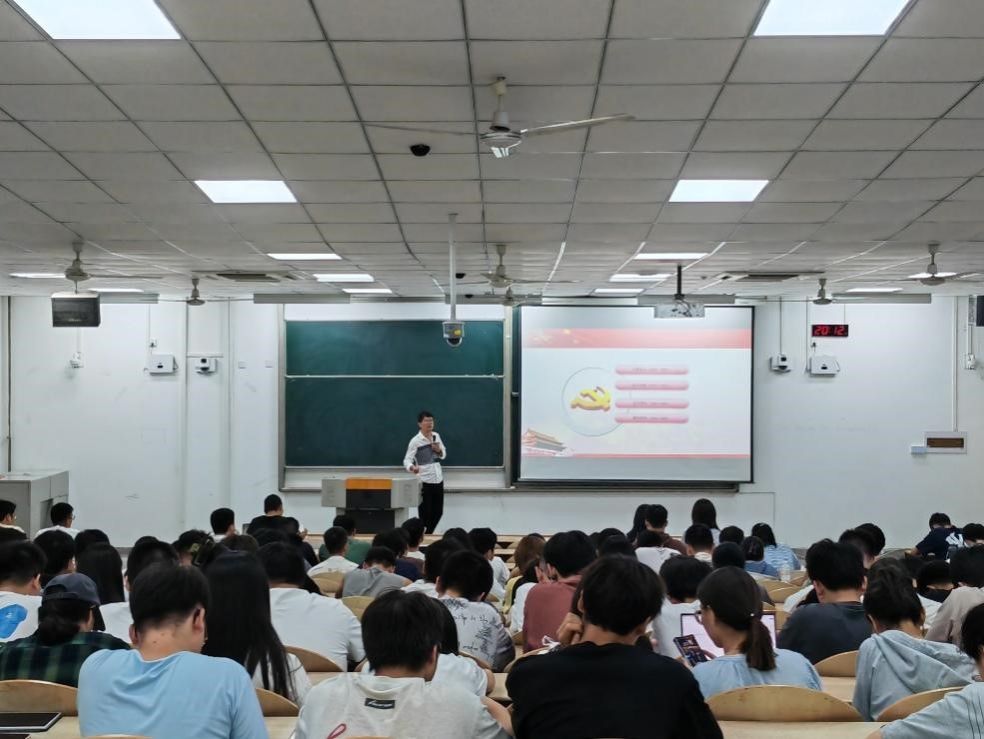 2024年9月25日晚上8点,兵器科学与技术学院辅导员王国栋老师在教1—103为69期入党积极分子讲授党课党史课。