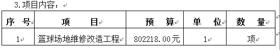 1.采购项目:(1)九江学院篮球场地维修改造工程;(2)该项目位于九江学院主校区南区;(3)项目质量要求:合格;(4)项目工期:60日历天。