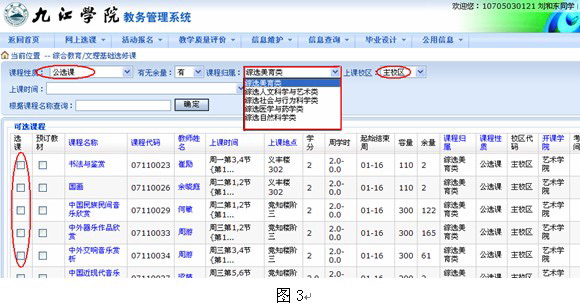 点击网上选课—>综合教育选修课,进入选课界面(图3