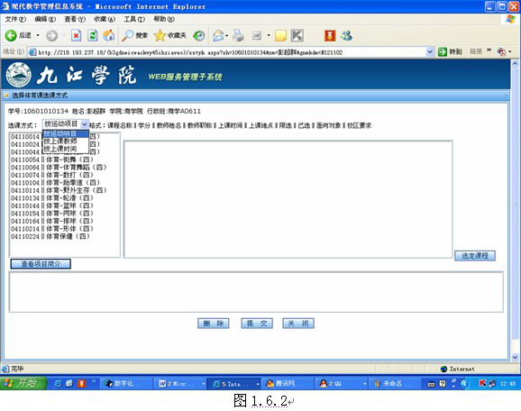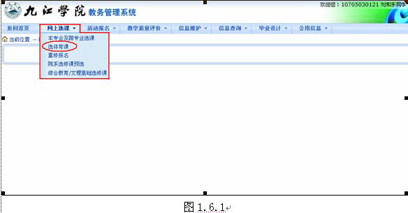 点击网上选课>选体育课(图1.6.1) 进入选体育课界面(图1.6.2