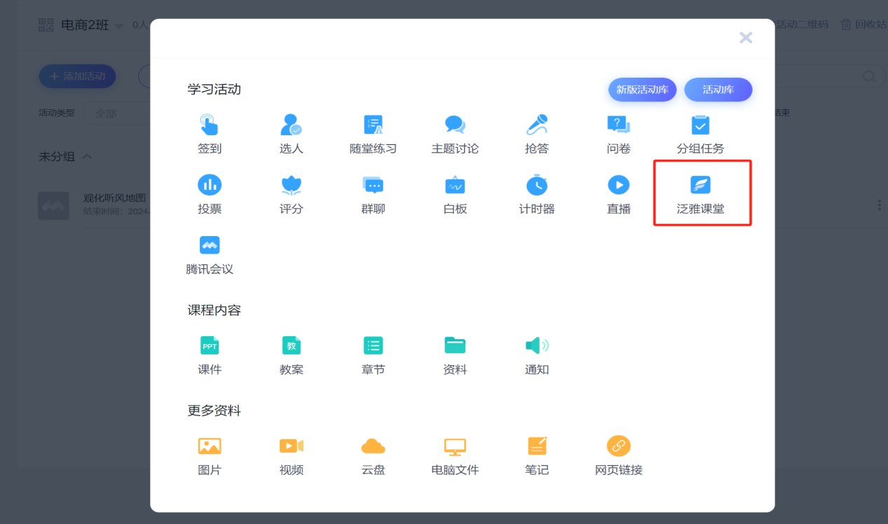 资源组合的工具,支持在一个任务下添加多种类型的资源并且构建学习路径与目标。学生可以通过任务进行路径学习或者目标学习。适用项目: