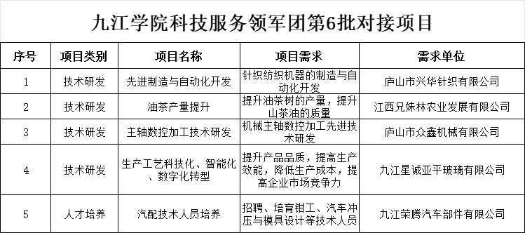 关于发布九江学院科技服务领军团第6批对接项目的通知