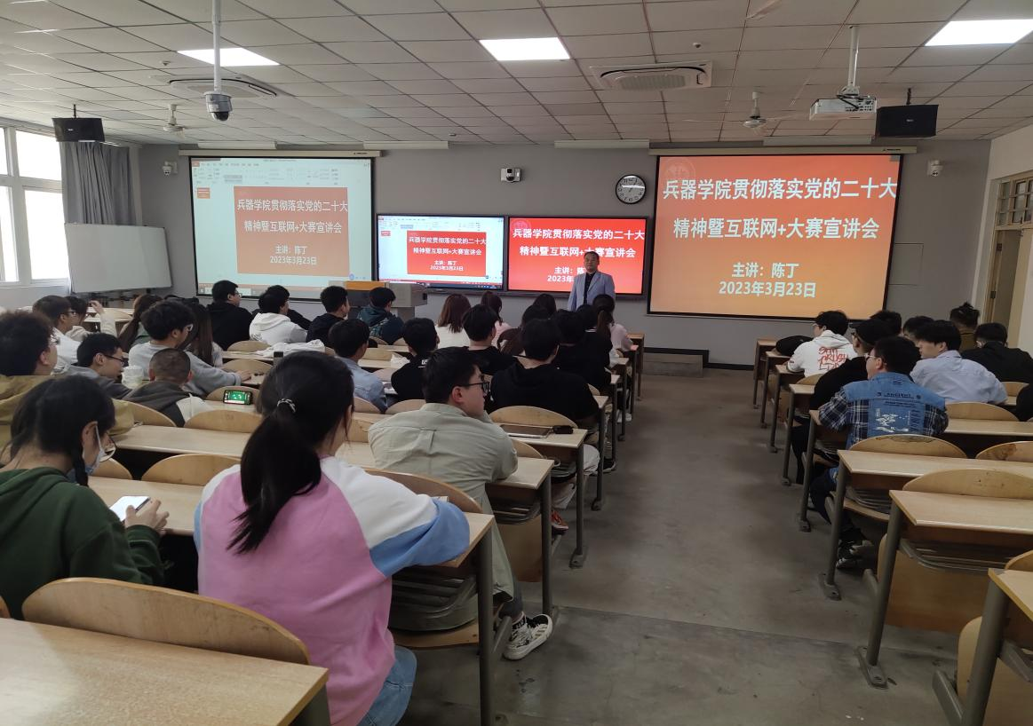 为深入贯彻落实党的二十大精神和全国教育大会精神,全面落实习近平总书记给中国“互联网+”大学生创新创业大赛“青年红色筑梦之旅”大学生的重要回信精神,激发兵器学院学生创新创业热情和创造力,切实提高学生的创新精神、创业意识和创新创业能力。2023年3月28日中午1点,西安工业大学兵器科学与技术学院在教2-208召开了互联网+大赛宣讲会,参与本次宣讲会的有兵器与科学技术学院本科生、21级研究生、22级研究生。为此我们邀请了兵器与科学技术学院武器系统与工程系副主任、硕士生导师陈丁老师来给大家从技术角度讲解互联网+项目如何撰写。