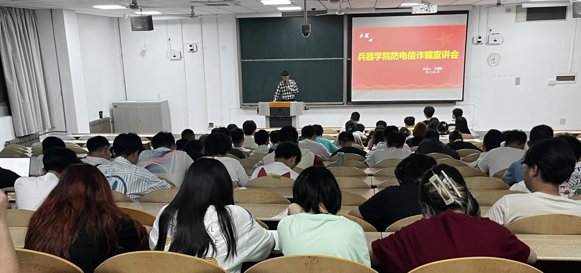 为进一步提升防范电信诈骗宣传力度,增强大学生的法制观念与安全意识,深入推进平安校园建设,2023年6月6日晚上8:00,兵器科学与技术学院辅导员王国栋老师在教1-104组织开展防电信诈骗宣讲会。兵器学院全体本科生、研究生200余名参加此次主题教育。