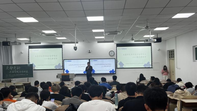考研老师围绕最新考研考情分析、报考流程、考研高分备考策略三个方面展开。她以鲜明的事例从多个角度讲述,由于全球裁员潮应届毕业生就业难问题、考公考编竞争大、出国留学费用大等多方面因素,考研成为一个较好的选择。近两年来,考研人数逐步增多,但录取人数增长较少,同时也出现了逆向考研的现象。对于这些问题,老师指出,考研应从专业、学校、分数出发,选取一个最适合自己的院校。紧接着老师分析我院人工智能、探测制导与控制技术、武器系统与工程三个专业的考研趋势,以及几所院校的分数线,建议大家在报考院校的同时也应该注意院校当年的招生人数。