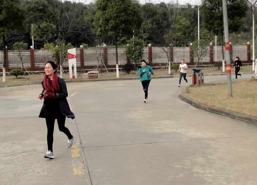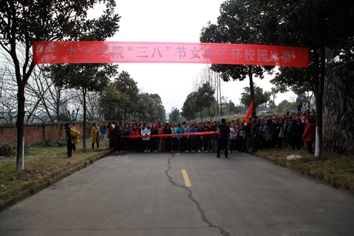 下午16时,第七届庆祝“三八”妇女节校园环跑活动开始。校工会主席金葆金作了简短讲话,向大家表示节日的问候,祝愿大家在本次环校跑活动中,取得优异成绩。随着金葆金的一声令下,只见女教工们犹如离弦之箭飞奔出去,她们反应敏捷,起跑干净利落。大家从体育训练馆出发,途经学生红楼宿舍、厚德楼、逸夫图书馆、拓展训练基地、两南山、室内田径馆、紫阳北路,最后到达校园西大门,总赛程约3000余米。