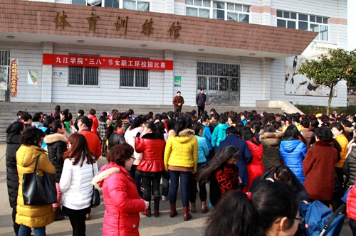 3月9日下午,雨过天晴,春风和煦,阳光灿烂,校园里开满了各色鲜艳夺目花朵。校体育训练馆前人声鼎沸,来自机关、各二级学院的老中青近700名女教职工早早地在赛场等候,她们个个精神饱抖擞,跃跃欲试。她们兴致勃勃地参加了庆祝“三八”环校跑活动。
