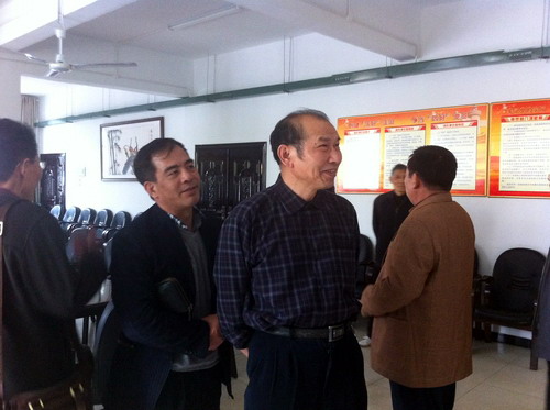浔东校区离退休支部书记程平孙向骆驭平一行详细介绍了中心各项配套设施和活动开展情况,并赠送了我校老年文学艺术协会主编的《蝶湖秋韵》。