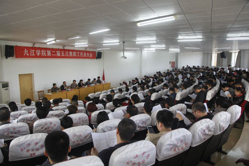 在认真审议《九江学院章程》修订案后,全体与会代表以举手表决的形式,一致通过了大会决议,圆满完成了大会议程,大会胜利闭幕。