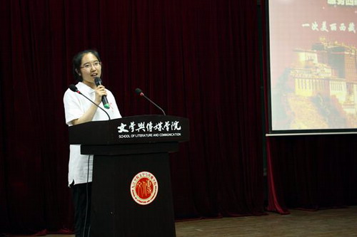 宣讲会上,宣讲团首先播放了西藏西部计划宣传片。视频短片使在场同学对西部计划项目和这些执着坚守,奉献青春的志愿者们有了更深的理解和认识,对西部计划志愿服务也有了更深的憧憬与向往。随后,宣讲团副团长扎西卓玛介绍了西部经济生活情况,对2015年“西部计划”西藏专项的相关政策进行了深入阐述,从社会保障、社会福利、经费保障等方面进行了详尽的解读。