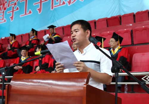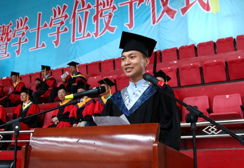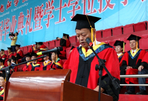 在典礼仪式上,副校长陶春元宣读了我校“2015届毕业生名单”;副校长杨焱林宣读了“关于授予王小龙等5686名毕业生学士学位的决定”。我校2015届毕业生11088人,其中本科学生5537人,专科学生5329人。