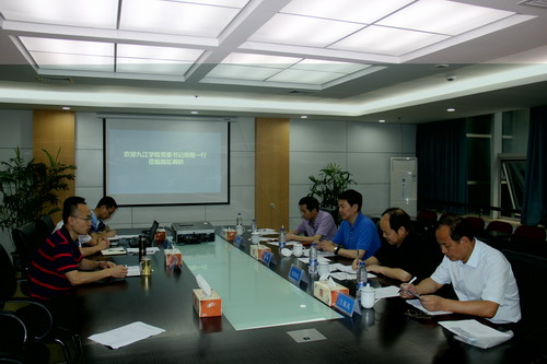在科技园会议室召开的调研座谈会上,郑书记向科技园相关负责人介绍了我校基本情况,并就“企业为什么会入驻园区?”、“怎样扶持师生创业?”等问题与园区负责同志进行了深入探讨。