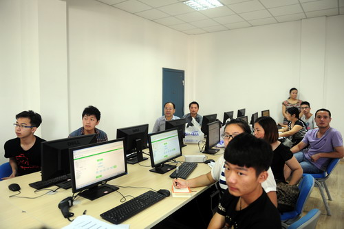 纪副校长首先来到603机房,看望了各个学院正在参加迎新工作培训的各位老师,并对迎新培训工作给予指导与肯定,同时要求大家在迎新过程中做到热情、细心、周到,圆满完成迎新工作。