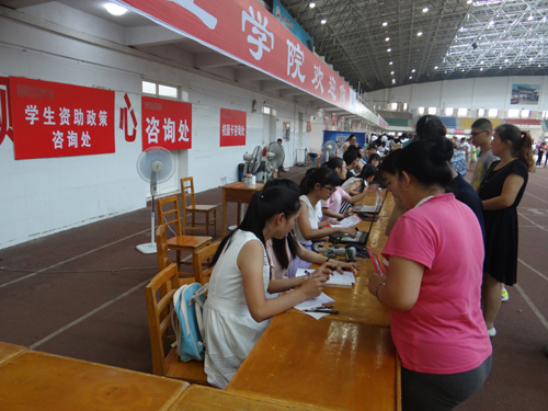 在三个校区新生报到现场,总咨询处、学生资助政策咨询处、财务收费处、校园卡咨询处、生活用品办理处和各二级学院的迎新工作点标志醒目、秩序井然。优化后的迎新工作系统更加科学、便捷,将许多报到手续进行前置处理,新生办理报到手续时,只需提交本人身份证和录取通知书。工作人员扫描读取录取通知书上的条形码,就可以获得学生的全部信息,省去了许多工作流程,大大提高了工作效率。在总咨询处为新生服务的招生就业处张老师告诉记者,与往年相比,今年的工作量小了许多。这说明今年的迎新工作更加科学、规范,新生在报到过程中遇到的问题少了,都能够很顺畅地办完报到手续。