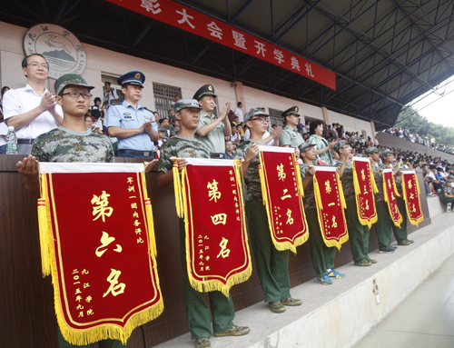 在同学们的热烈掌声中,2015级新生军训总结表彰大会暨开学典礼结束。至此,为期9天的军训圆满落下帷幕,也拉开了2015级新生新学期的序幕。在九江学院这片承载着梦想与希望的热土上,2015级新生一定能秉承“竞知向学,厚德笃行”的校训,迎接充满挑战和机遇的大学时代!