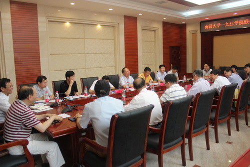 甘校长代表九江学院感谢南昌大学在与我校开展联合培养硕士研究生工作方面给予的大力支持和帮助,他指出南昌大学和九江学院在学科发展方面已经开展了很多合作。今年省厅下发了学科联盟建设指导意见,九江学院要趁着这个“东风”加大与南昌大学的合作力度,依托南昌大学开展实质性的“联合招生、单独培养”专业硕士研究生工作。甘校长还简要介绍了我校的发展历史、区位优势和学位特色,特别介绍了我校在“山,江,湖”学科群建设方面取得的成绩。