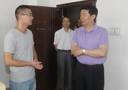 在南湖校区,郑翔实地查看了改建后的科技园大楼,详细了解了施工进展及下一步工作计划,并要求对改建后的南湖校区加强卫生、水电、保卫等方面的后续管理,具体管理模式可以借鉴浔东校区、庐峰校区的模式。郑翔强调,科技园大楼投入使用后,常驻企业工作人员的饮食保障是亟需处理的问题,各相关部门要提出针对性解决方案,为入园企业创造良好的餐饮条件。在主校区厚德楼,郑翔了解了厚德楼的搬迁、装修进度,并要求相关部门督促其他企业加快装修进度,尽早完成入驻。