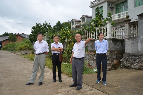 9月25日,副校长杨焱林、党办主任刘遵海、组织部副部长、村建扶贫工作组组长燕红波等一行冒着毛毛细雨,到我校村建扶贫点--武宁县官莲乡东山村调研。武宁县扶贫办及官莲乡政府有关领导陪同调研。