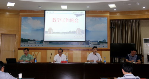 9月29日下午,学校在4号会议室召开10月份教学工作例会,副校长陶春元出席会议并讲话,教务处马明亮处长主持会议。实验中心等部门负责人,各二级学院教学副院长、教务科长参加了会议。