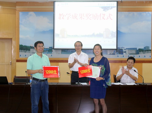会上,陶春元副校长代表学校向获得第十四批省级教学成果奖的教师颁发了证书和奖金。