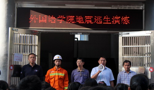 杨杰书记强调,开展此次安防知识培训暨防震防火、逃生知识演练活动是外国语学院充分落实“安全工作五个一”工程的重要举措之一,旨在培养学生在遇到突发事件中能沉着冷静,掌握正确的逃生要领,从容应对火灾、地震等事件的发生,最大限度的保护学生们的人身安全,并要求同学们在演练过程中要认真对待、掌握要领、听从指挥。院团委书记江山就此次演练的路线、流程作了具体安排。