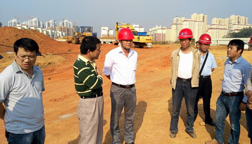 10月16日下午,杨焱林副校长在基建处处长齐清波陪同下,来到艺术学院新建工程施工现场检查指导工作。