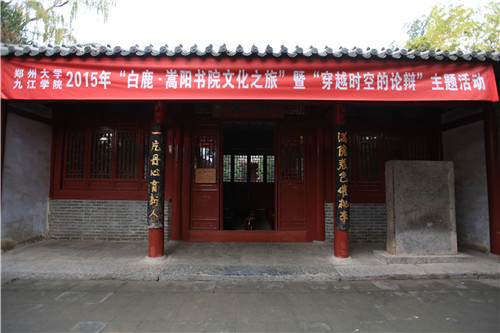 深秋时节,中州大地。银杏灿烂金黄,诉说着千载的华夏古老文明;黄河静朴流淌,回味着八年的书院文化交流。2015年11月20日,“白鹿嵩阳书院文化之旅”暨“穿越时空的论辩”主题活动在郑州大学举行,这是九江学院和郑州大学连续第八年举行这项活动。