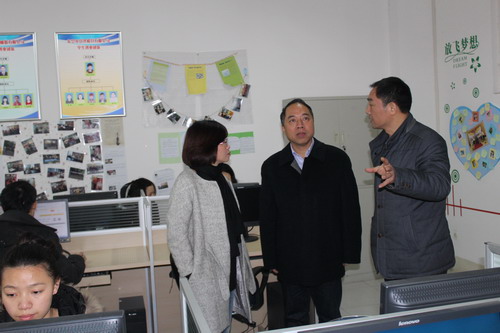 在二楼,甘校长来到外国语学院校企合作平台(PUE: Platform of University and Enterprise)创业实践区,看到学生正在利用平台忙碌地进行跨境电商作业,非常高兴。他对该院依托高校的智力和人力资源,以社会需求为导向,与企业共同构建人才合作培养机制,实现校企合作办学、合作育人、合作发展的模式表示肯定。
