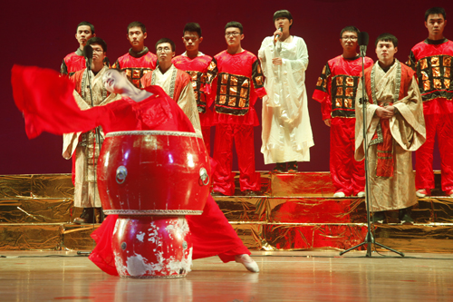 国学素养教育是我校特色教育之一。为了充分展示我校国学素养教育成果,比赛中间,还穿插着进行了国学经典诵读表演。土建学院、化环学院、艺术学院、文传学院为大家带来了他们在第四届国学诵读比赛上的获奖节目,美轮美奂的表演博得了师生们的阵阵掌声。