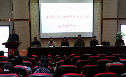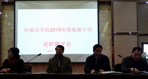 12月25日下午,校党委书记郑翔在党办主任刘遵海和综合科科长汪浩的陪同下,参加了外国语学院处级干部述职测评大会。会议由刘遵海主任主持。
