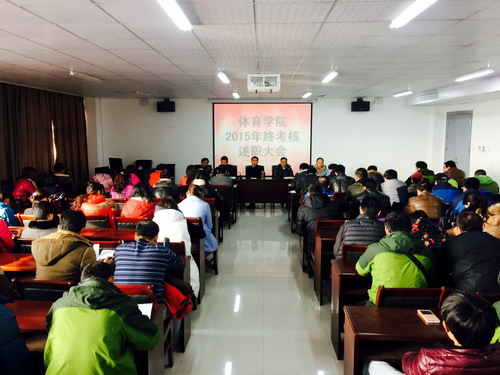 随后,体育学院书记张浦强、院长王勤就2015年度各自的工作进行述职。述职结束后,接着进行了现场测评,与会教师根据每位处级干部一年来在“德、能、勤、绩、廉、法”等方面的表现,客观认真地填写了测评表。