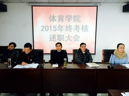 会上,体育学院党委书记张浦强就党的建设、学生安全稳定工作、党风廉政建设、团学工作、运动竞赛和学生管理等方面详细汇报了体育学院在2015年党委各项工作。体育学院院长王勤就教学工作、学科建设、内涵建设、育人工作、运动竞赛、群体活动、场馆管理和服务地方社会经济等方面详细汇报了体育学院在2015年行政方面完成的各项工作。