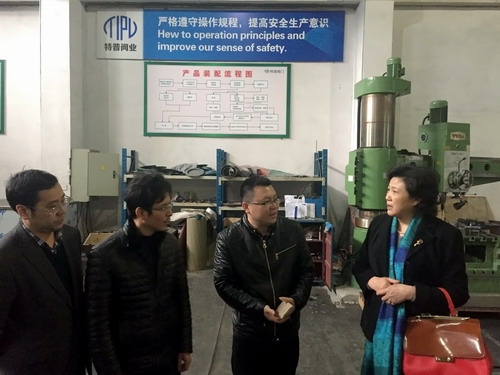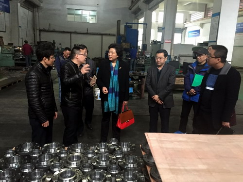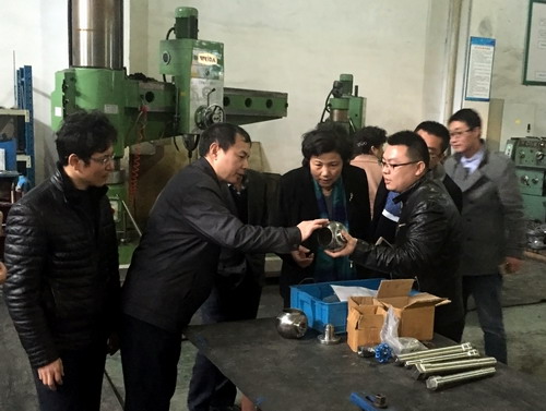为了解机材学院校友在外就业创业状况,推动机材学院就业创业工作的持续深入开展,加大校企合作力度,寒假伊始,1月17日,机材学院领导和老师在吴桃娥副校长的率领下赴温州走访看望机材学院校友并到部分校友企业开展调研。招生与就业处处长肖国丰、毕业生交流办公室主任兼招生与就业处副处长罗双凤、机械与材料工程学院院长张德勤、党委副书记陈胜才、副院长李养良等陪同吴桃娥副校长对机材学院校友企业特普阀业有限公司进行了考察调研,该企业由机材学院2006届毕业生宋家印创办。