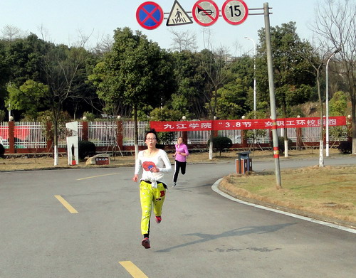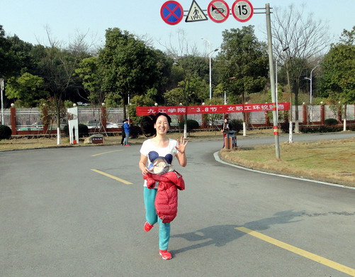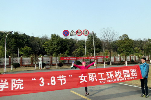 一路上,大家精神抖擞,大步向前,整个活动现场气氛热烈,巾帼女英雄们个个积极踊跃,热情参与,充分展示了我校女教职工团结、奋进、自尊、自信、自立、自强的精神风貌。在环校跑队伍中,有一支特别的队伍,她们是离退休女教工,她们精神焕发,健步如飞,风采不减当年,成为一道亮丽的风景线。活动过程中,年长的女教职工和许多女青年教师一起,满怀信心地向目的地跑去。大家自始至终精神抖擞,朝气蓬勃,充分展现了九江学院人奋发向上、团结一致的精神。虽然气温较低,寒气袭人,但是广大女教职工们在这个属于自己的节日里,参与活动的热情丝毫不减,她们一路欢声笑语,一直坚持到了环跑线路的终点。