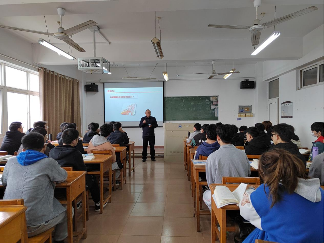 在竞知楼917教室,陈小林勉励电子A2021班同学,把握学习机会,学好专业本领,成长为祖国和人民需要的人才。陈小林的讲话赢得了该班同学的热烈掌声。