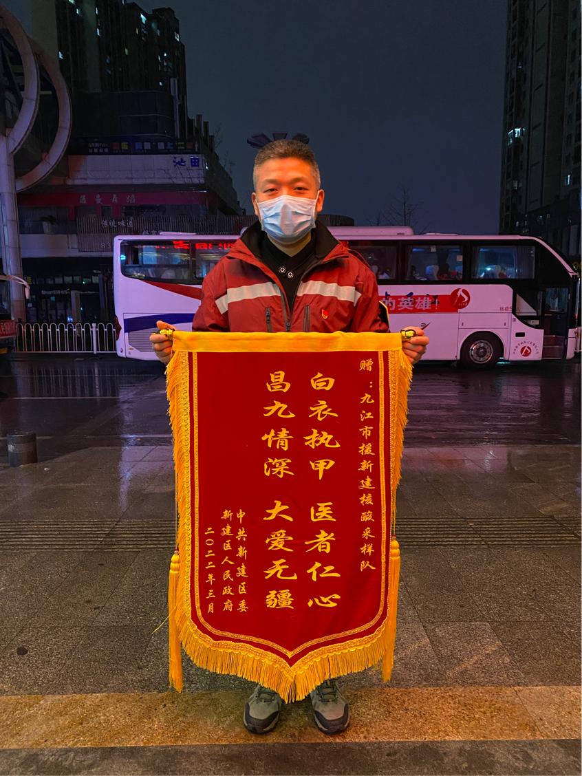 “经过1周的努力,队员们顺利完成支援南昌核酸采样任务,50名医务人员零感染,作为队长我的心终于放下来了。”没有了半夜的紧急电话,九江学院附属医院援昌核酸采样队队长党员董俊,卸下肩上的“担子”,睡了个踏实觉。