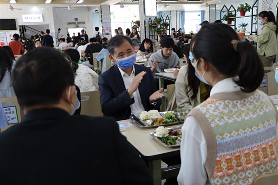 校党政办、学生处、文学院等部门负责同志陪同座谈调研。座谈会结束后,学生代表热情邀请赵伟书记和与会老师在学生一食堂共进午餐并合影留念,师生共同留下了温馨美好的记忆瞬间。