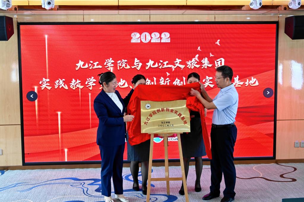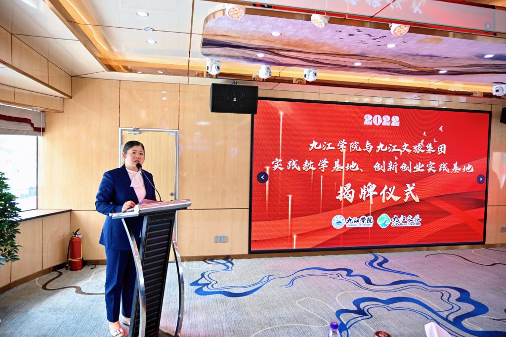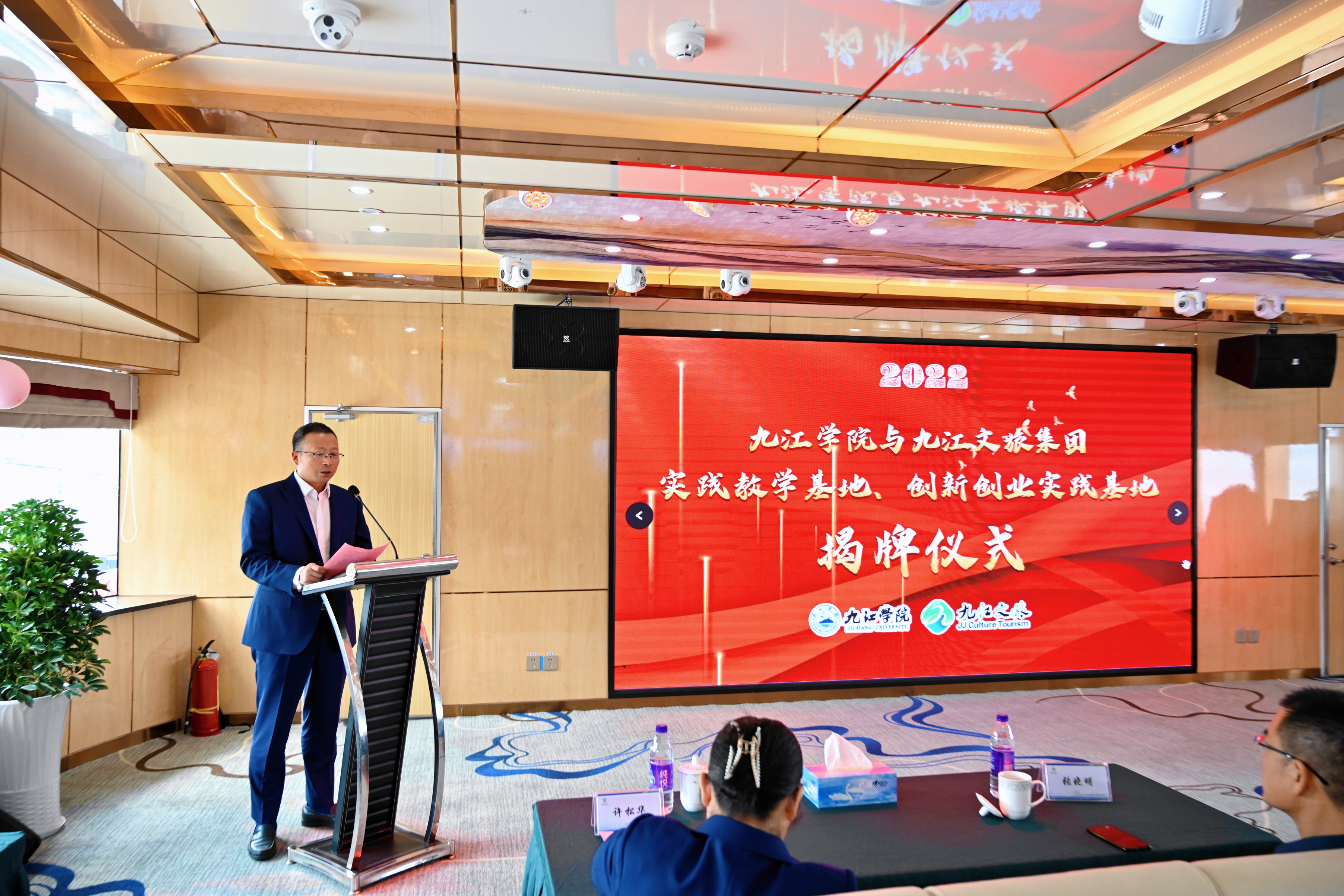 揭牌仪式上,严平对九江市文旅集团长期以来支持九江学院的发展表示感谢,并介绍了学校的发展历程、办学特色、专业设置等基本情况。严平表示,九江学院历来十分重视学生社会实践教育活动,努力协调各方社会资源为学生搭建实践平台,建立“实践教学基地”和“创新创业实践基地”,帮助大学生提高就业创业能力。此次实践教育基地和创新创业实践基地的建立,为九江学院师生搭建了一个很好的实践平台,对于实现校企资源的有机结合和优化配置,提升学校的教育教学水平和人才培养质量,助推学校高质量服务地方经济社会发展具有重要意义。