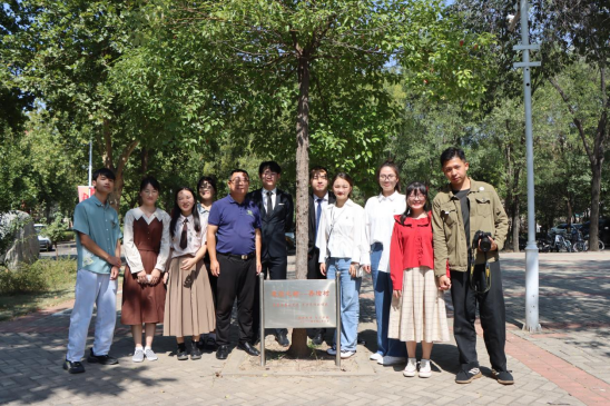 在郑州大学期间,我校师生在郑州大学师生的陪同下,来到了2011年两校师生共同手植的香樟树下。这棵香樟树位于郑州大学历史学院的教学楼前,被赋予了“承载白鹿的灵秀,守望嵩阳的博大”的深沉又美好愿望,是两校师生友好往来的见证。大家在香樟树下合影留念。