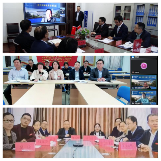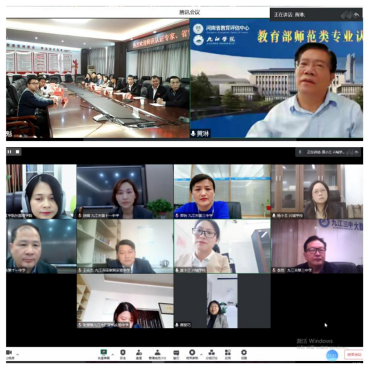 专家在线走访了九江三中、九江十一中、九江田家炳实验中学等师范专业校外实践基地,并与实习基地负责人进行了线上访谈,就实习生在实践基地的教学技能训练、班主任管理培训、经费支持等方面进行了交流。