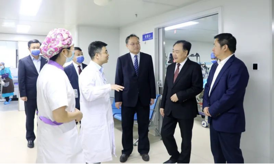 当天讲座开始之前,樊院士一行在市卫健委主任郑健林和附属医院负责人的陪同下,参观了九江学院附属医院门诊和消化内镜室等处,就九江学院附属医院消化内镜室建设和消化内科发展进行了指导。