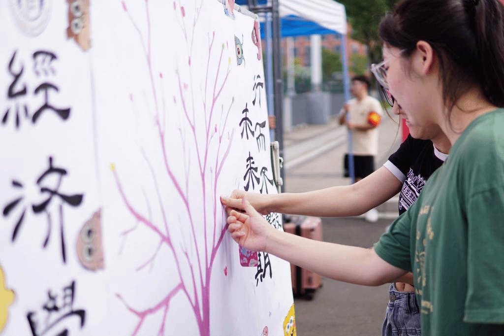 在迎新现场,各学院结合自身特色,精心设计了宣传展板、背景墙等,开展丰富多样的花式打卡留影活动,仪式感满满。