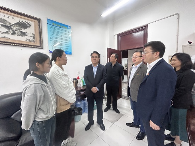 在外国语学院,李明斌实地走访了行政办公区,并与学院师生进行了亲切交谈。李明斌对外国语学院近年来党建、人才培养、学科建设等方面的工作给予了充分的肯定。他指出,外国语学院党建工作有特色,行政工作有成效,希望外国语学院党政班子继续凝聚力量,紧扣学校应用型高校办学定位,积极转变观念,结合本院工作实际进行前瞻性思考、全局性谋划、战略性布局,以高质量教育服务地方经济高质量发展。学院党委要坚决扛起全面从严治党政治责任,不断提升党组织的组织力、凝聚力和战斗力,积极发挥基层党组织的战斗堡垒作用和党员的先锋模范作用,强化理论武装,进一步凝练党建品牌特色,强化红色引擎,扎实推动党建与教育深融互促。要加强师德师风建设,努力构建“三全育人”工作格局,强化担当意识,提升立德树人实效。