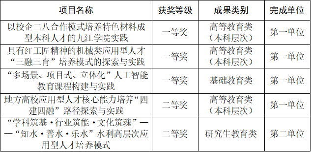 学校高度重视教学成果奖的培育和建设工作,出台了《九江学院教学成果奖培育项目管理办法(试行)》,夯实高水平教学成果培育建设基础。此次获奖体现了我校在人才培养、教育教学改革以及专业建设方面取得的新进展。学校将充分发挥获奖成果的示范引领作用,持续打造教学成果培育建设体系,推动学校教育教学质量和水平不断提升,助力学校应用型转型和高质量发展。