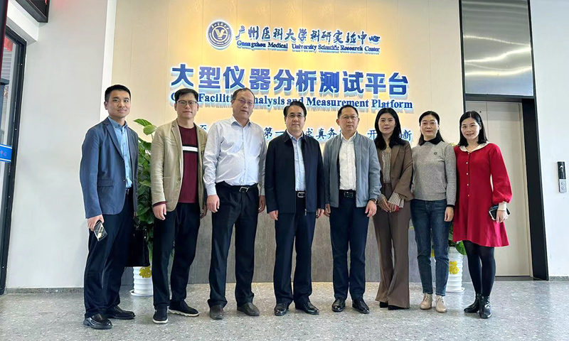 李明斌一行参观了广州医科大学科研实验中心、校史馆、抗击非典纪念馆等处,并同该校校长赵醒村、副校长周麟,以及教务处、医院管理处、科研处、办公室等部门负责人就办学理念、医学教学、医学生临床实践与考核等内容开展了深入交流。